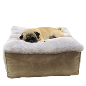 Unser quadratisches Hundebett mit Liegefläche aus Webpelz für das besonders kuschelige Liegevergnügen.