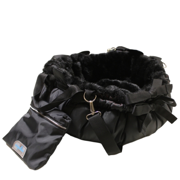 Hundekörbchen in Form einer sportlichen Tasche mit kleiner Außentasche.