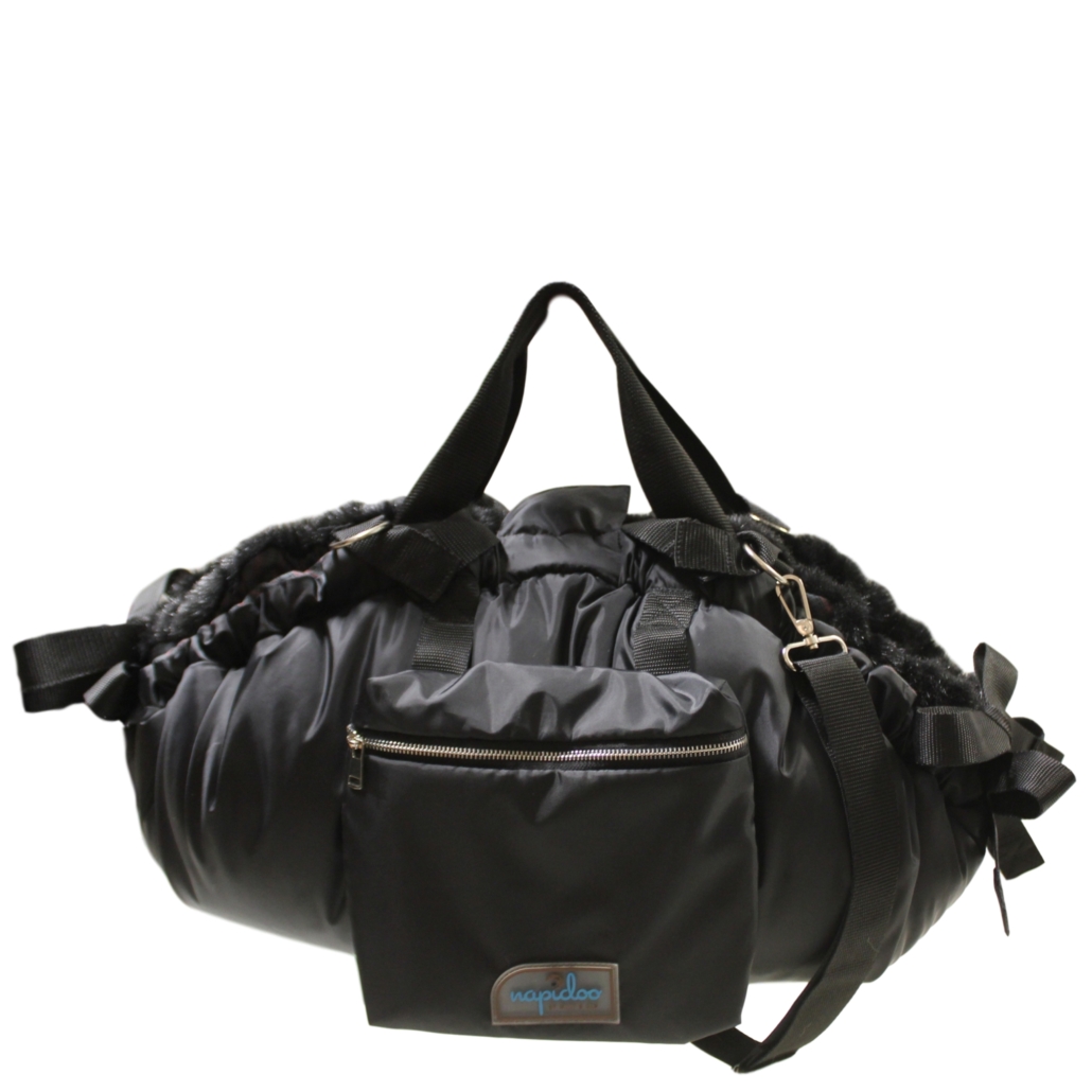 Hundekörbchen in Form einer sportlichen Tasche mit kleiner Außentasche.