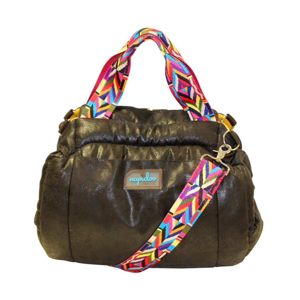Bunt gemusterte Griffe, Bänder und Schultergurt.