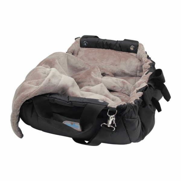 Rechteckiges Hundekörbchen in Form einer sportlichen Tasche mit zwei Schubfächern.