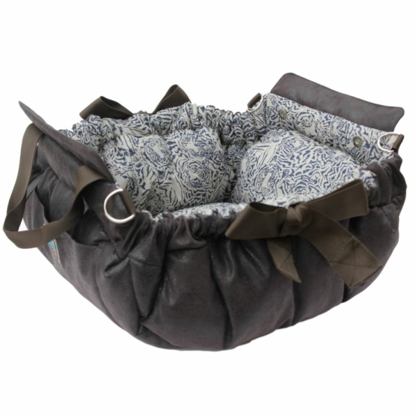Rechteckiges Hundekörbchen in Form einer sportlichen Tasche mit zwei Schubfächern.