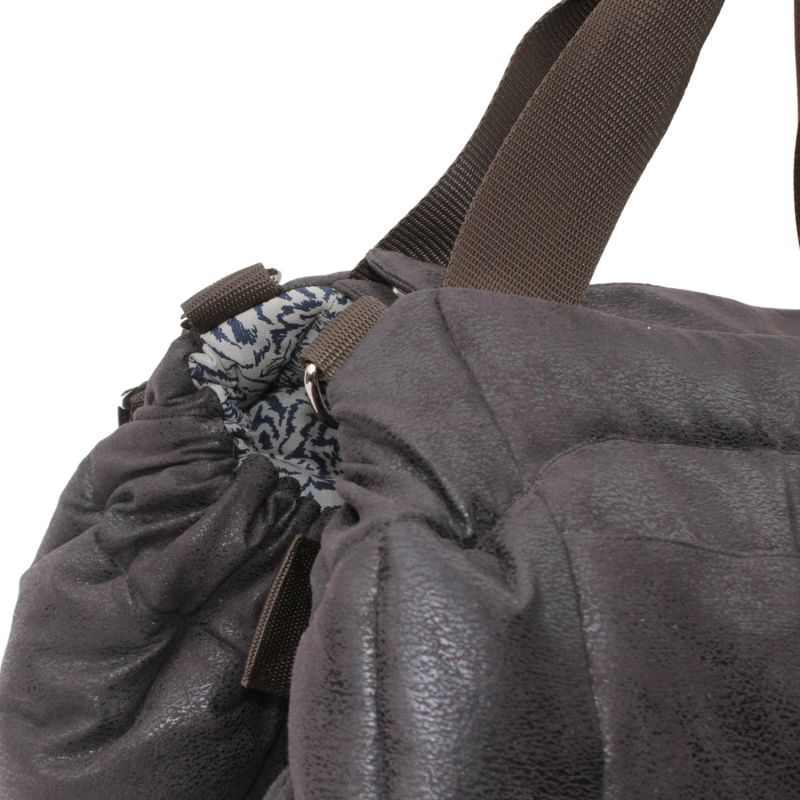 Das Außenmaterial besteht aus braunem Stoff in Lederoptik.