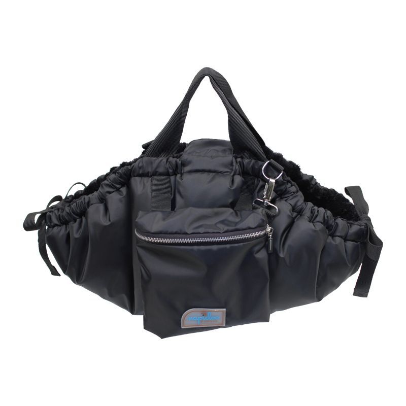 Hundekörbchen in Form einer sportlichen Tasche mit kleiner Außentasche.